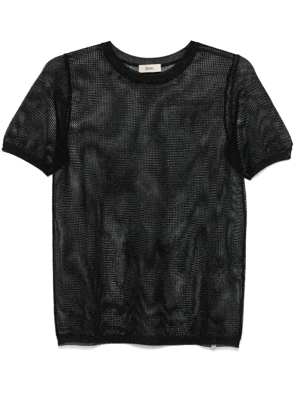 open-knit T-shirt Highlights - Black - Ribbed cuffs and hem - Lurex detailing - Logo plaque Imported Composition Viscose 80%, Cotton 55%, Polyester 45%, Metallic Fibre 20% SIZE & FIT Model measurements Height 5 ft 10 in(1.78 m) Bust/Chest 33.46 in(85 cm) Hips 36.22 in(92 cm) Waist 23.22 in(59 cm) FittingInformation Designed for a relaxed fit, this piece allows for comfort and movement when worn Made with a lightweight knit, this piece offers some stretch