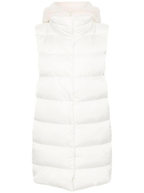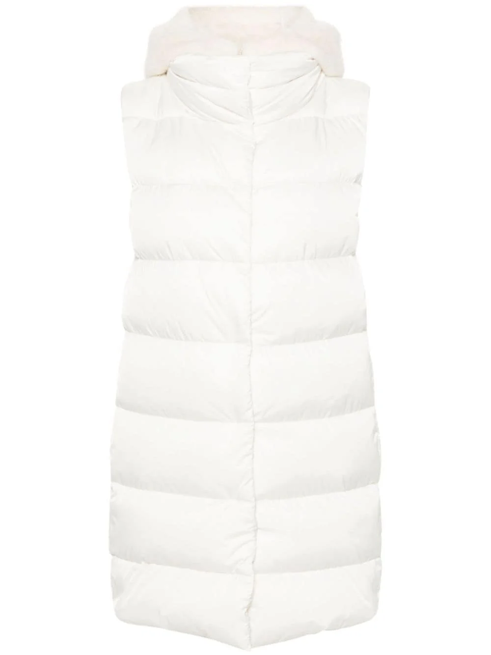 padded gilet Highlights - Cream white - Feather down - Padded design - Front press-stud and zip fastening - Quilted - Detachable panels - Faux-fur detailing - Classic hood - Sleeveless - Two side zip-fastening pockets - Straight hem Imported Composition Lining: Polyamide 100%, Down 80%, Feather 20% Outer: Polyester 100% SIZE & FIT Model measurements Height 5 ft 11 in(1.8 m) Bust/Chest 33.07 in(84 cm) Hips 37.4 in(95 cm) Waist 25.19 in(64 cm) FittingInformation Designed to be unstructured, offering a loose fit throughout The detachable panel offers the preference for a different fit Made from a padded non-stretch fabric, giving it no natural elasticity Washing instructions Dry Clean Only