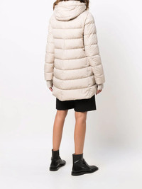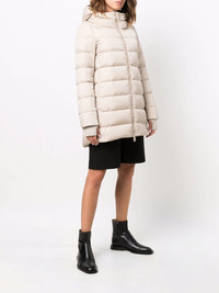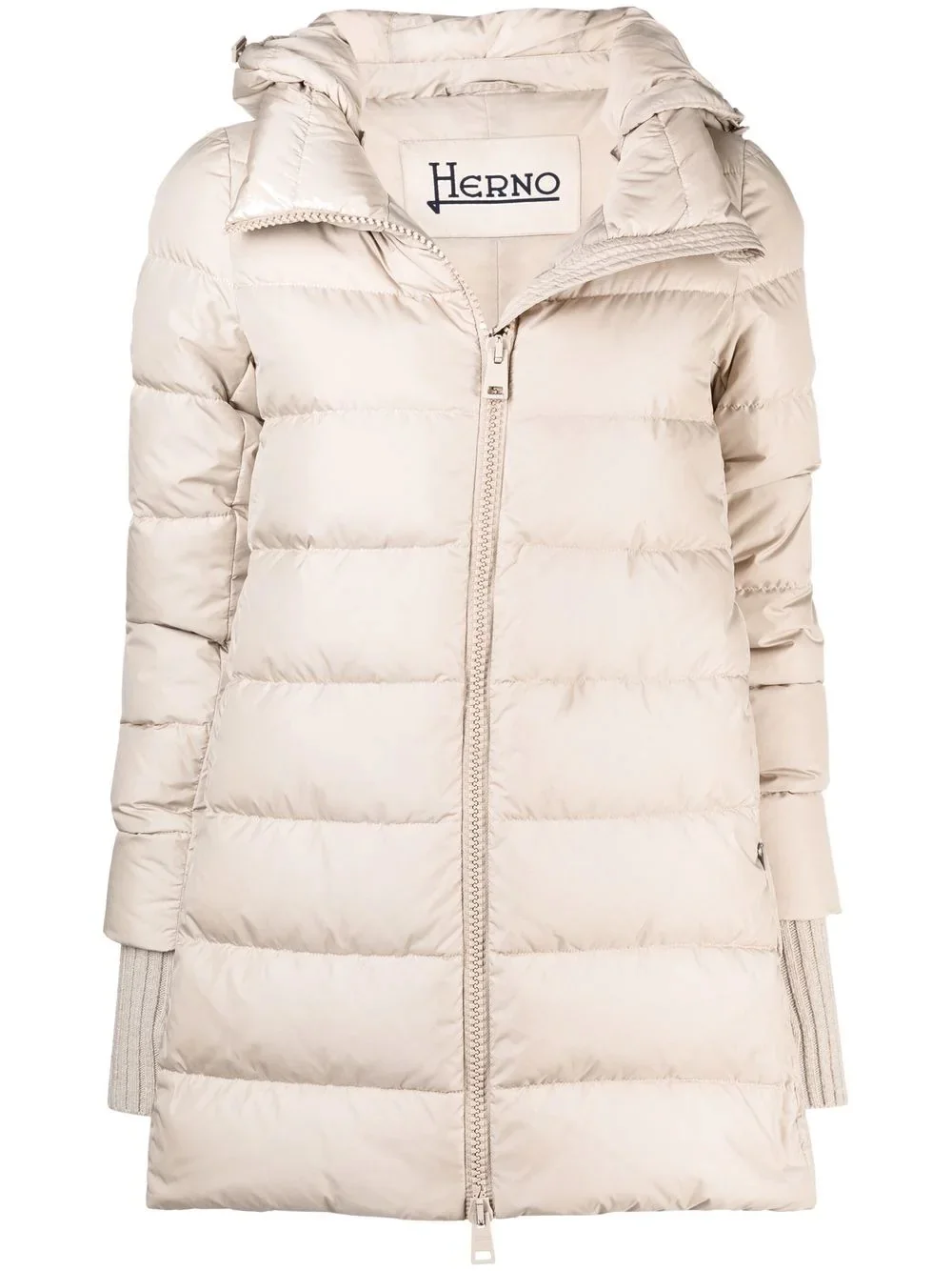 padded hooded coat Herno is known for being a specialist in outerwear and this puffer jacket is the proof. With a soft feather-down construction, this beige padded coat is finished with contrasting ribbed-knit cuffs. Highlights - Beige - Down-feather filling - Padded design - Stand-up collar - Classic hood - Front zip fastening - Long sleeves - Two side zip-fastening pockets - Mid-length Imported Composition Lining: Feather Down 100%, Polyamide 100% Outer: Polyamide 100% SIZE & FIT Model measurements Height 5 ft 9 in(1.74 m) Bust/Chest 32.28 in(82 cm) Hips 35.82 in(91 cm) Waist 24.01 in(61 cm) FittingInformation This piece fits true to size. We recommend you get your regular size Cut for a loose fit Made with a mid-weight non-stretch fabric Washing instructions Dry Clean Only