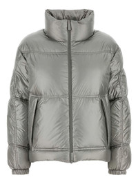 padded jacket Highlights - Silver-tone - Down-feather filling - High neck - Zip fastening - Front zip pockets Made in Italy Composition Outer: Recycled Nylon 100% Lining: Nylon 100%, Down 80%, Feather 20% Washing instructions Read Manufacturer Guidelines