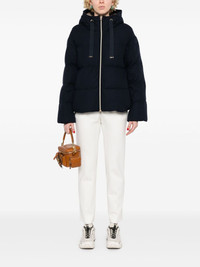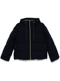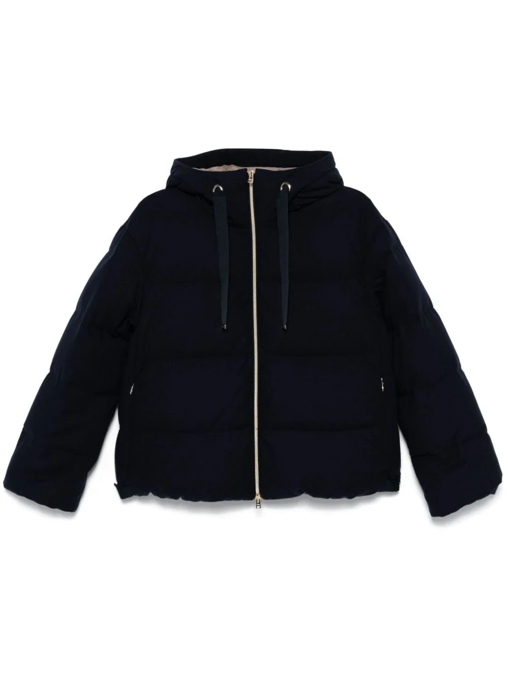 padded jacket Highlights - Navy blue - Cashmere blend - Twill weave - Down-feather filling - Front two-way zip fastening - Padded design - Quilted - Drawstring hood - Long sleeves - Two side zip-fastening pockets - Straight hem Made in Italy Composition Outer: Cotton 55%, Recycled Cashmere 50%, Polyamide 45%, Polyester 45%, Recycled Wool 5% Lining: Polyester 100%, Goose Down 90%, Goose Feather 10% SIZE & FIT Model measurements Height 5 ft 9 in(1.75 m) Bust/Chest 34.64 in(88 cm) Hips 36.61 in(93 cm) Waist 26.37 in(67 cm) FittingInformation Designed for a relaxed fit, this piece allows for comfort and movement when worn The adjustable tabs allow for fitted preferences Made from a padded non-stretch fabric, giving it no natural elasticity
