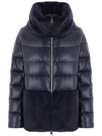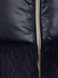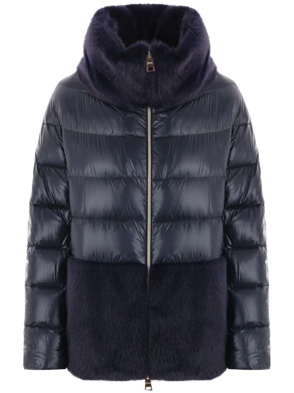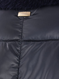 padded jacket Highlights - Navy blue - Goose down - Padded design - Quilted panels - Faux-fur detailing - Stand-up collar - Long sleeves - Two side inset pockets - Straight hem - Full lining - Front two-way zip fastening Made in Italy Composition Lining: Polyamide 100%, Goose Down 90%, Goose Feather 10% Outer: Polyamide 100%, Polyester 100%