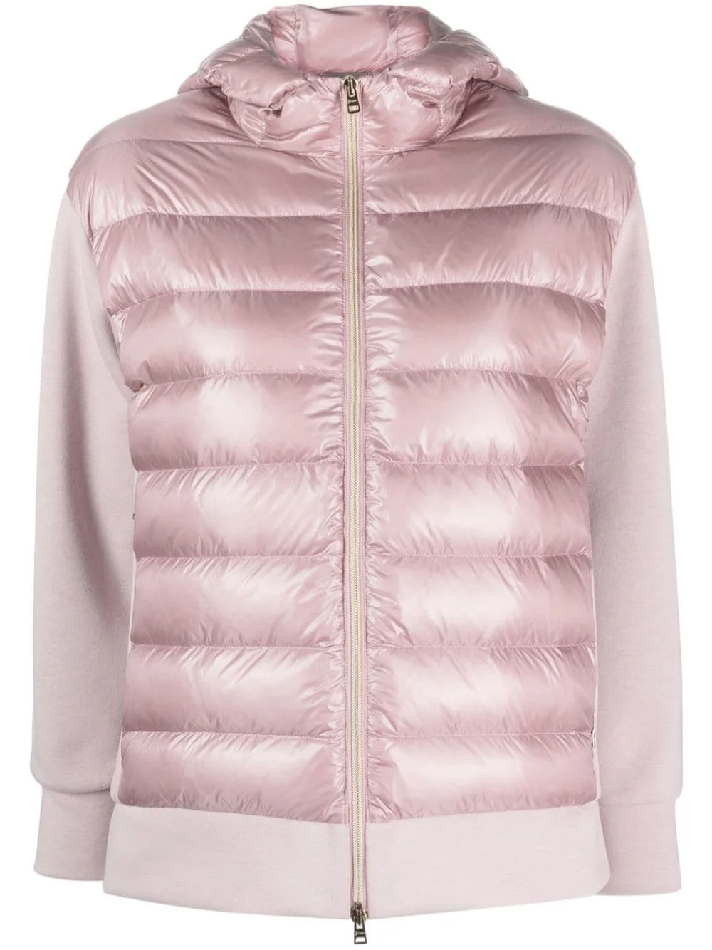 padded-panels hooded jacket Highlights - Light pink - Cotton/feather down - Padded panels - Quilted - Tonal stitching - Classic hood - High neck - Front two-way zip fastening - Long sleeves - Two side zip-fastening pockets - Straight hem Imported Composition Lining: Polyamide 100%, Feather Down 100% Outer: Cotton 100%, Polyamide 100% SIZE & FIT Model measurements Height 5 ft 10 in(1.78 m) Bust/Chest 30.7 in(78 cm) Hips 36.22 in(92 cm) Waist 25.59 in(65 cm) FittingInformation Designed for a relaxed fit, this piece allows for comfort and movement when worn Made from a midweight non-stretch fabric, this piece offers minimal elasticity when worn This piece fits true to size – take your usual size Washing instructions Machine Wash