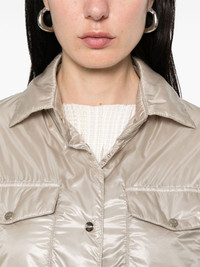 padded shirt jacket Highlights - Champagne - Front press-stud fastening - Two chest flap pockets - Press-stud fastening cuffs - Classic collar Imported Composition Polyester 100%, Polyamide 100% SIZE & FIT Model measurements Height 5 ft 10 in(1.78 m) Bust/Chest 33.46 in(85 cm) Hips 36.22 in(92 cm) Waist 23.22 in(59 cm) FittingInformation Designed to be unstructured, offering a loose fit throughout Made from a padded non-stretch fabric, giving it no natural elasticity