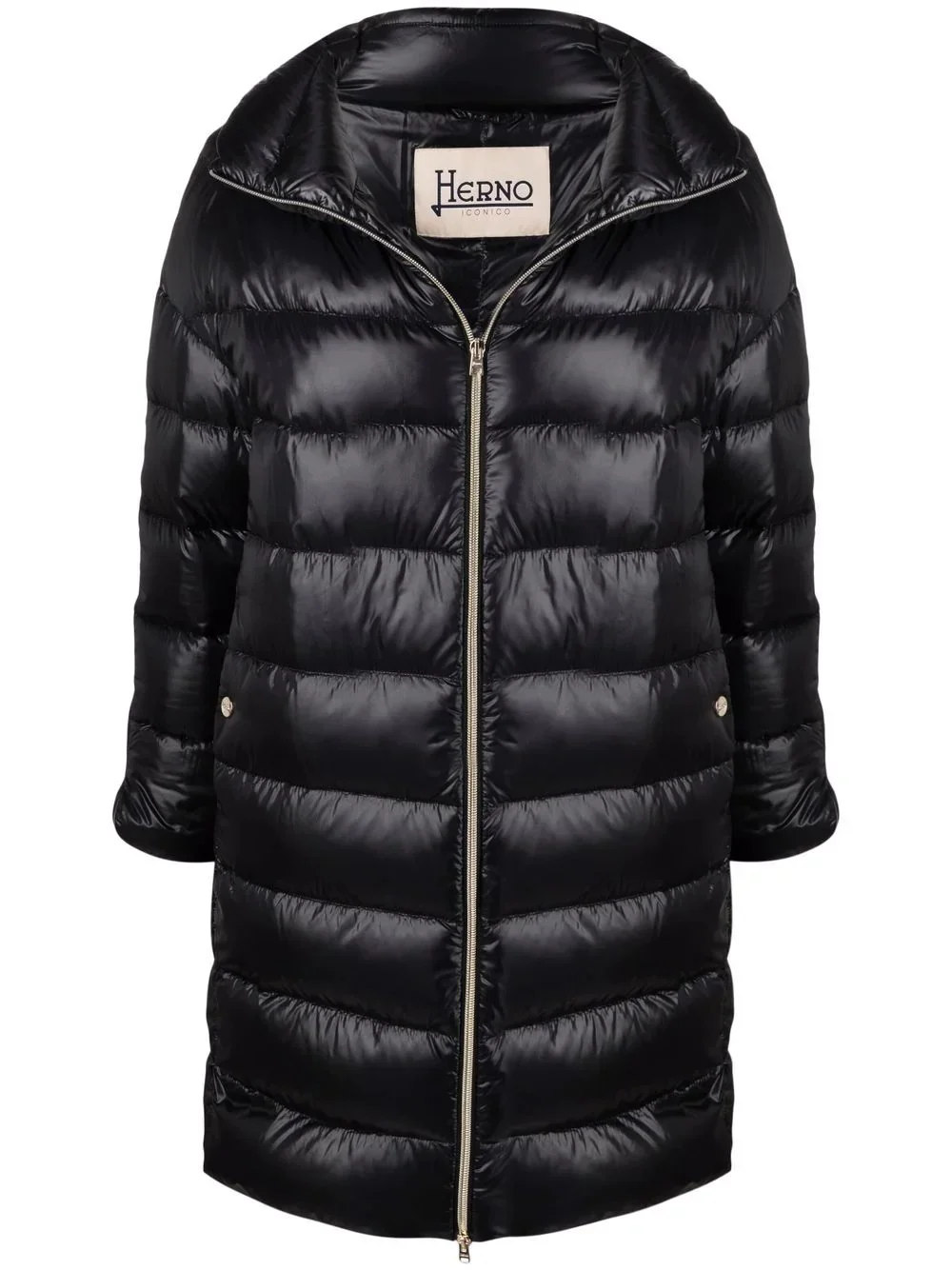 padded zip-up coat black feather down padded design stand-up collar front zip fastening long sleeves two side slit pockets knee-length Imported Composition Lining: Feather Down 100%, Polyamide 100% Outer: Polyamide 100% SIZE & FIT Model measurements Height 5 ft 10 in(1.78 m) Bust/Chest 31.49 in(80 cm) Hips 33.85 in(86 cm) Waist 24.01 in(61 cm) FittingInformation This piece fits true to size. We recommend you get your regular size Cut for a loose fit Made with a lightweight non-stretch fabric Washing instructions Hand Wash