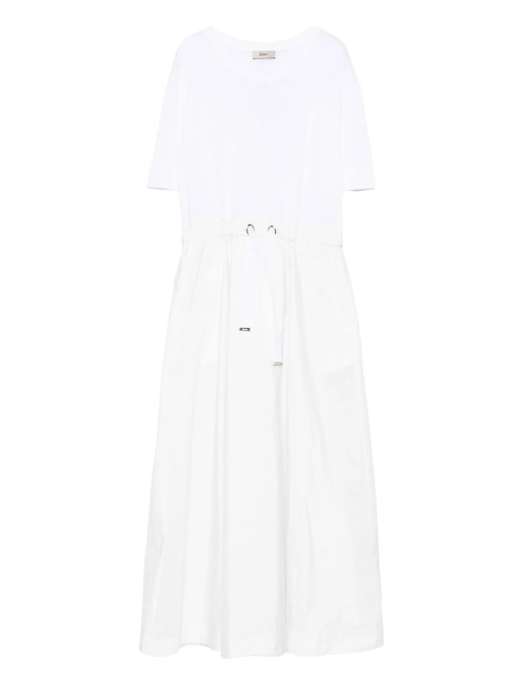drawstring midi dress Highlights - White - Drawstring waist - Short sleeves - A-line skirt - Round neck Imported Composition Polyester 100%, Lyocell 67%, Cotton 33% Washing instructions Machine Wash