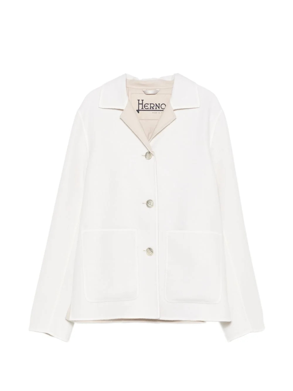 patch-pocket jacket Highlights - White - Button fastening - Pointed collar - Patch pockets - Long sleeves - Straight hem Made in Italy Composition Outer: Virgin Wool 99%, Polyamide 1% Lining: Acetate 65%, Polyester 35% Washing instructions Dry Clean Only