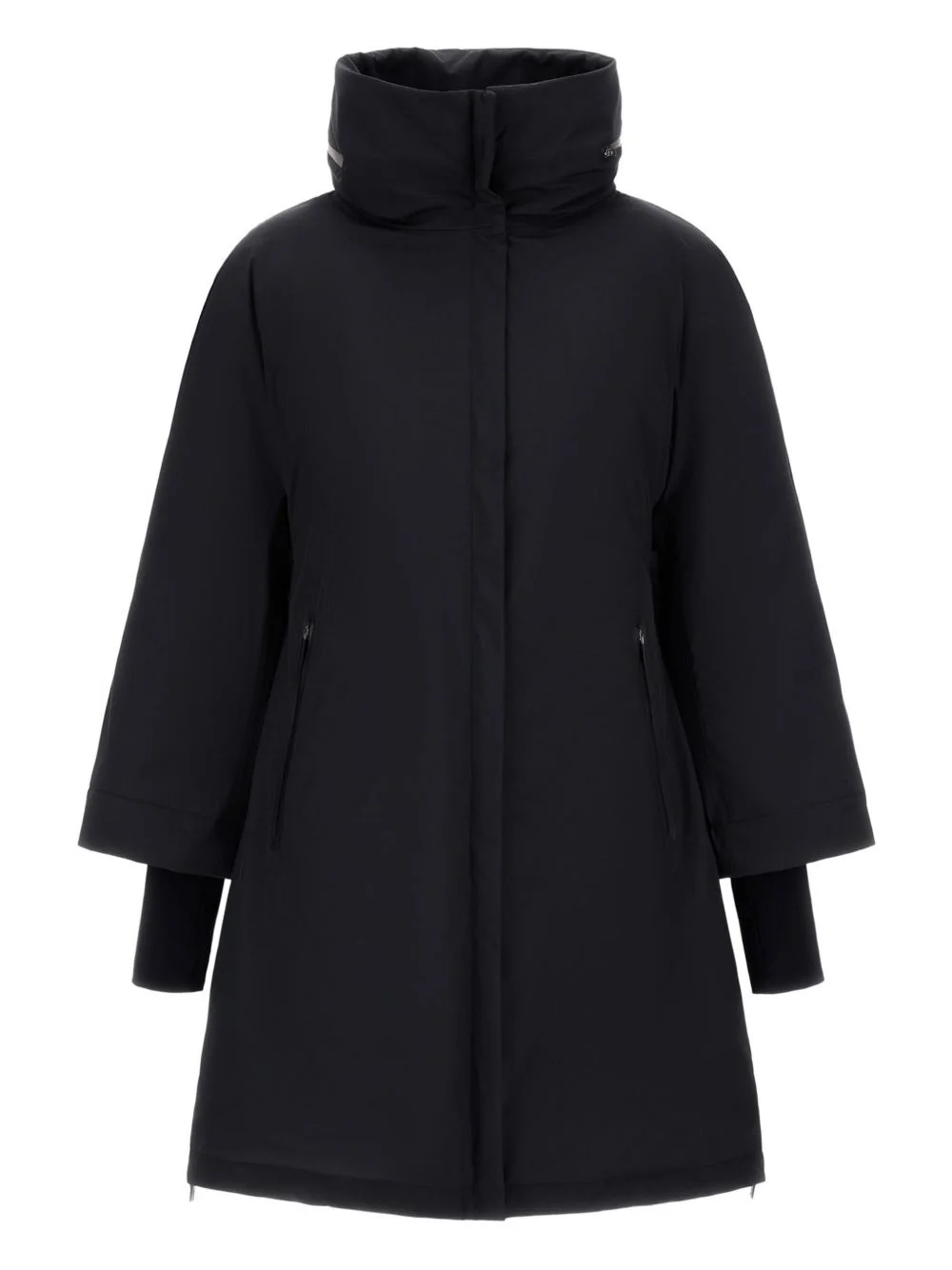 high-neck coat Highlights - Black - Down padding - High neck - Zip side pockets Imported Composition Outer: Polyester 100%, Polyurethane 100% Lining: Polyamide 100%, Down 80%, Feather 20% Washing instructions Read Manufacturer Guidelines
