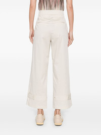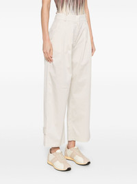 pleat-detailing trousers Highlights - Ecru - Concealed front button, hook and zip fastening - Belt loops - Two diagonal pockets to the sides - Two rear welt pockets Made in Italy Composition Cotton 66%, Polyamide 31%, Elastane 3% SIZE & FIT Model measurements Height 5 ft 10 in(1.78 m) Bust/Chest 33.46 in(85 cm) Hips 36.22 in(92 cm) Waist 23.22 in(59 cm) FittingInformation Designed for a relaxed tapered cut, these trousers allow for a close fit at the waist and offer a loose fit at the thighs, with a closer fit toward the ankles Made from a lightweight stretch fabric, this piece offers elasticity and flexibility when worn