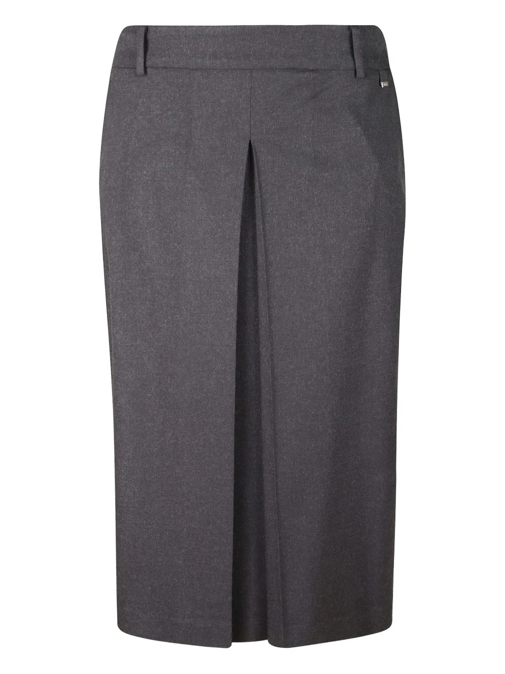 pleated midi skirt Highlights - Grey - Centre pleat - Side pockets - Belt loops - Concealed back zip fastening - Logo detail Made in Italy Composition Viscose 82%, Polyester 15%, Elastane 3% Washing instructions Read Manufacturer Guidelines