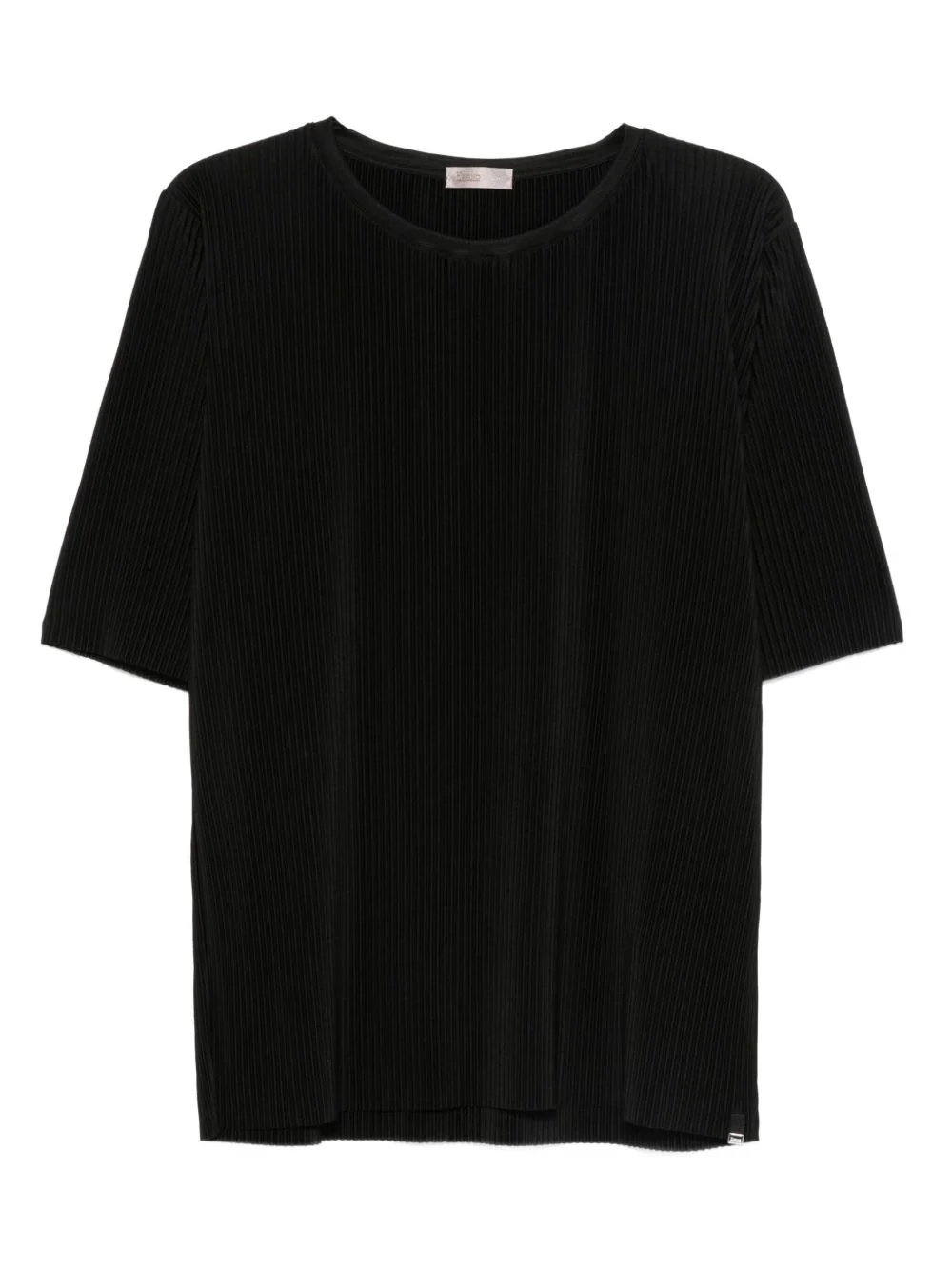 pleated short-sleeve T-shirt Highlights - Black - Pleated texture - Short sleeves - Round neck - Straight hem Imported Composition Polyester 100% SIZE & FIT Model measurements Height 5 ft 10 in(1.79 m) Bust/Chest 31.88 in(81 cm) Hips 35.43 in(90 cm) Waist 23.62 in(60 cm) Washing instructions Machine Wash