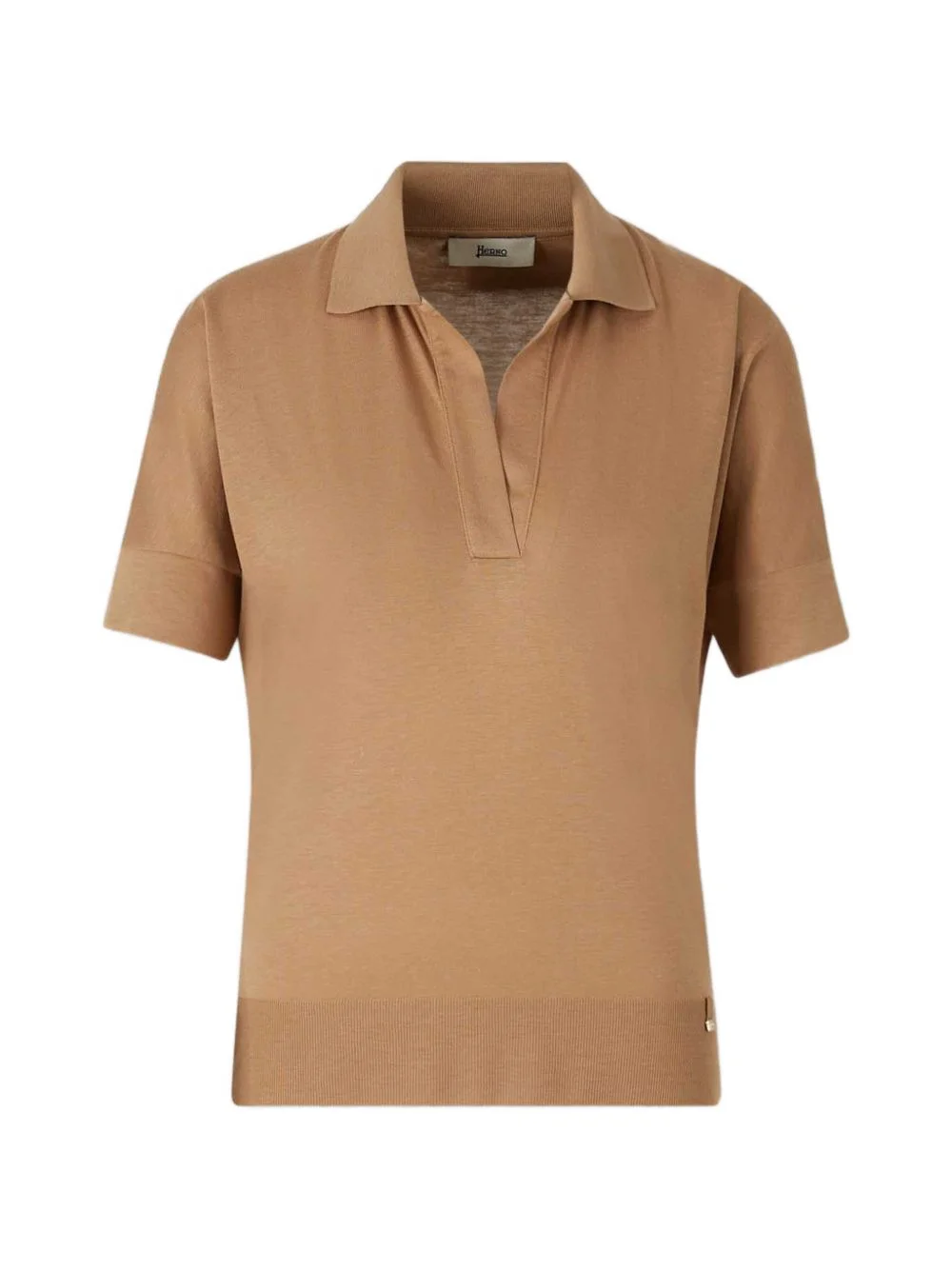 polo-collar top Highlights - Brown - Polo collar - Short sleeves - Ribbed hem - Metal logo plaque Imported Composition Fabric 100% Washing instructions Read Manufacturer Guidelines