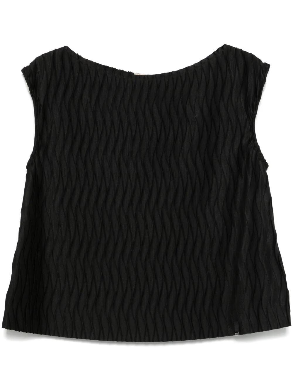 plisse top Highlights - Black - Crew neck - Sleeveless - Logo plaque Imported Composition Polyester 100% SIZE & FIT Model measurements Height 5 ft 9 in(1.75 m) Bust/Chest 31.88 in(81 cm) Hips 34.64 in(88 cm) Waist 24.01 in(61 cm) FittingInformation Designed to be unstructured, offering a loose fit throughout Made from a lightweight non-stretch fabric
