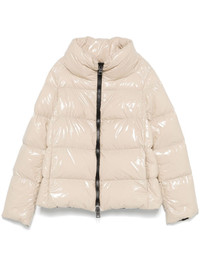 puffer jacket Highlights - Light beige - Down-feather filling - Padded design - Quilted - Glossy finish - Front two-way zip fastening - Funnel neck - Long sleeves - Two side slit pockets - Straight hem Imported Composition Outer: Polyamide 100%, Polyvinyl Acetate (PVA) 100% Lining: Polyamide 100%, Down 80%, Feather Down 20% SIZE & FIT Model measurements Height 5 ft 10 in(1.77 m) Bust/Chest 30.7 in(78 cm) Hips 35.03 in(89 cm) Waist 23.62 in(60 cm) FittingInformation Designed for a relaxed fit, this piece allows for comfort and movement when worn Made from a padded non-stretch fabric, giving it no natural elasticity