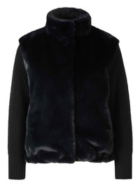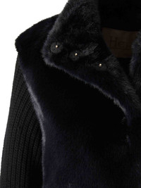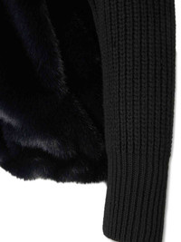 faux fur ribbed-cuff jacket Highlights - Black - Faux fur - Ribbed cuffs - High neck - Button closure - Two pockets Imported Composition Lining: Acetate 65%, Polyester 35% Outer: Polyester 100%, Wool 100% Washing instructions Read Manufacturer Guidelines