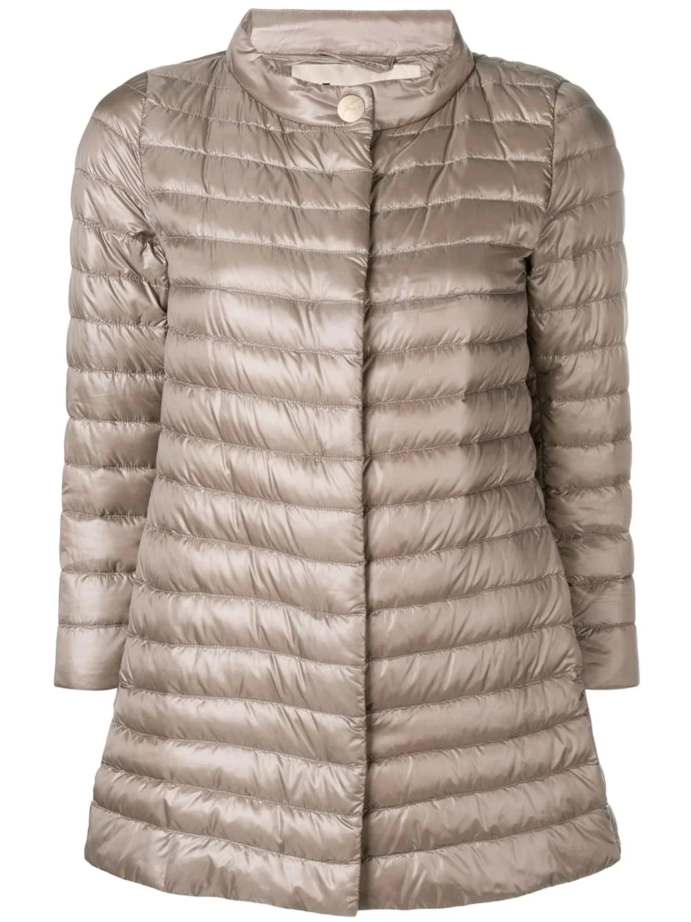 quilted coat Brown cotton blend and feather down quilted coat from Herno featuring a band collar, a front button fastening, three-quarter length sleeves and a straight hem. Imported Composition Outer: Polyamide 100%, Cotton 60%, Acetate 40% Lining: Feather Down 100%, Polyamide 100% Washing instructions Hand Wash