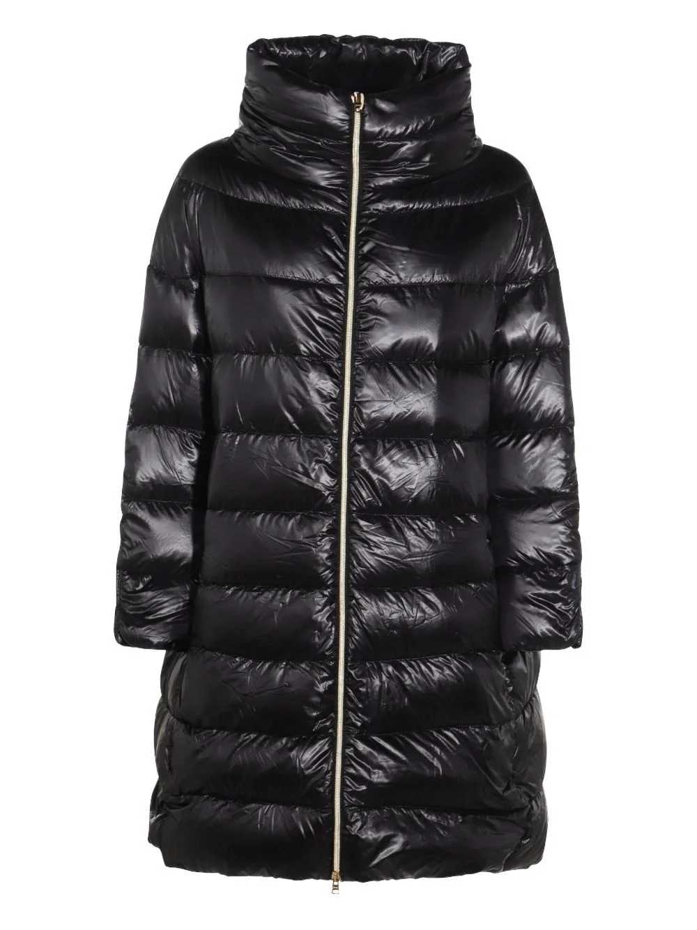quilted high-neck oversized coat Highlights - Black - Quilted design - High neck - Zip fastening - Long sleeves - Straight hem Imported Composition Polyamide 100% Washing instructions Read Manufacturer Guidelines