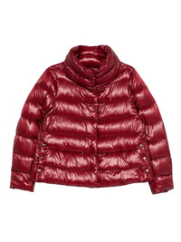 quilted high-neck padded jacket Highlights - Herno women's down jacket, red, water-repellent silky-effect nylon, gold metal, high neck, pockets with horizontal zip on front, side slits with logo buttons and contrasting fabric monogram motif, metal plate with logo on back, closure with hidden buttons, injected padding with very fine goose down, regular fit, wr treatment, medium insulation.100% polyamide; lining:100% polyamide; padding:90% duck down, 10% feathers; Imported Composition Outer: Polyamide 100%, Polyester 61%, Cotton 39% Lining: Polyamide 100%, Goose Down 90%, Goose Feather 10% SIZE & FIT Model measurements Height 5 ft 10 in(1.78 m) Bust/Chest 31.49 in(80 cm) Hips 37 in(94 cm) Waist 23.62 in(60 cm) FittingInformation Designed to be unstructured, offering a loose fit throughout Made from a padded non-stretch fabric, giving it no natural elasticity Washing instructions Hand Wash