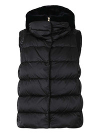 quilted hooded gilet Highlights - Black - Quilted design - High neck - Sleeveless - Faux-fur lining - Zip fastening Imported Composition Polyimide 100% Washing instructions Read Manufacturer Guidelines