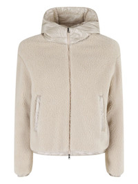 quilted hooded jacket Highlights - Off-white - Teddy texture - Hooded - Elasticated cuffs - Zip fastening Imported Composition Fabric 100% Washing instructions Read Manufacturer Guidelines