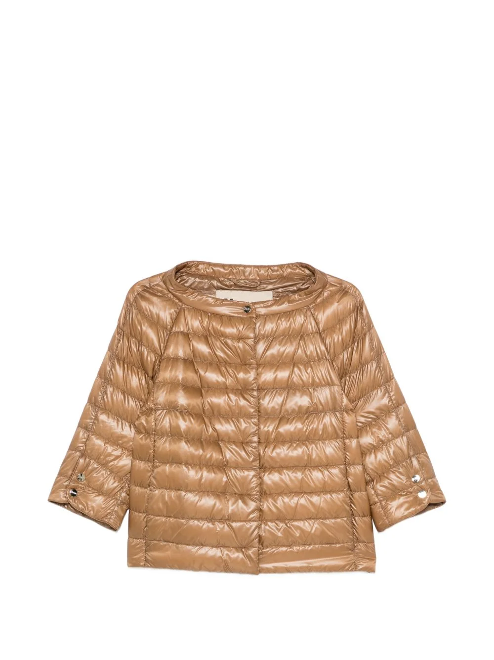 quilted jacket Highlights - Brown - Quilted - Round neck - Snap fastening - Three-quarter sleeves Imported Composition Outer: Polyamide 100% Lining: Polyamide 100%, Goose Down 90%, Goose Feather 10% Washing instructions Hand Wash