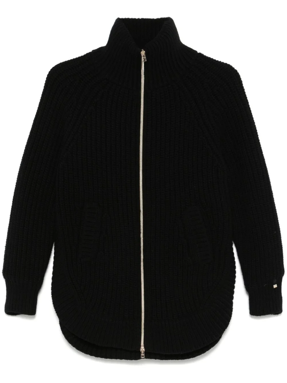 panelled-design high-neck jacket Highlights - Black - Virgin wool - Down-feather filling - Fisherman's knit - Quilted panels - Front two-way zip fastening - Stand-up collar - Long raglan sleeves - Gold-tone logo plaque - Two front welt pockets - Side slits - Padded panels - Full lining - Curved hem Imported Composition Wool 100% SIZE & FIT Model measurements Height 5 ft 10 in(1.77 m) Bust/Chest 33.07 in(84 cm) Hips 37 in(94 cm) Waist 24.8 in(63 cm) FittingInformation Designed to be unstructured, offering a loose fit throughout Made from a midweight fabric