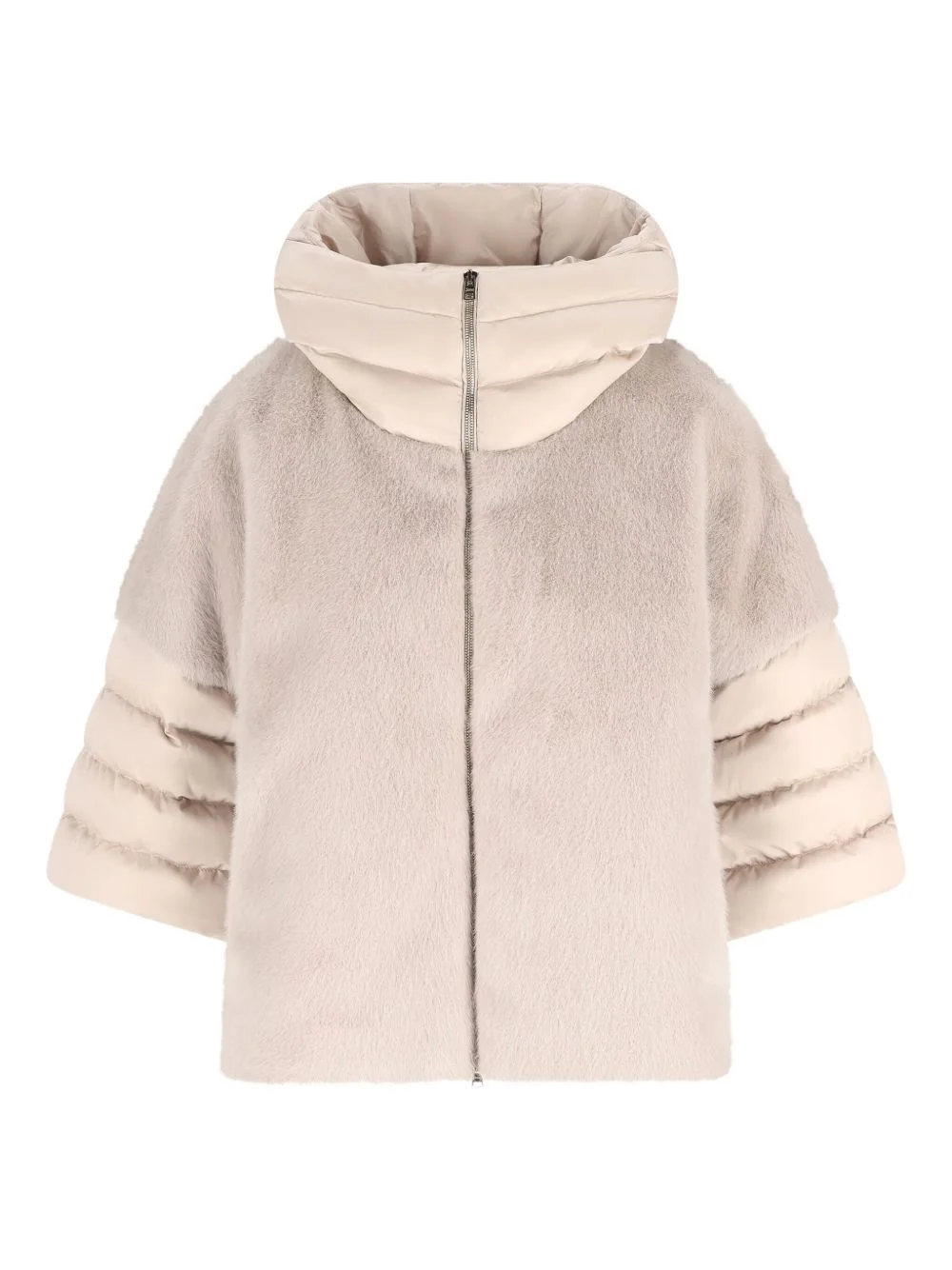quilted-panel faux-fur jacket Highlights - Beige - Faux-fur design - Quilted panels - High neck - Zip fastening - Hooded design Imported Composition Lining: Polyamide 100%, Feather 100%, Down 100% Outer: Polyester 100% Washing instructions Read Manufacturer Guidelines