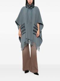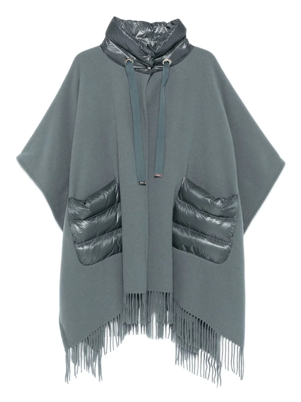 quilted-pocket fringed poncho Highlights - Powder blue - Quilted pockets - High neck - Drawstring fastening - Fringed hem - Short sleeves Made in Italy Composition Outer: Polyamide 100%, Wool 90%, Cotton 55%, Polyester 45%, Cashmere 10% Lining: Goose Down 90%, Goose Feather 10% SIZE & FIT Model measurements Height 5 ft 10 in(1.78 m) Bust/Chest 33.46 in(85 cm) Hips 36.22 in(92 cm) Waist 23.22 in(59 cm) Measurement LENGTH 42.12 in(107 cm) FittingInformation Designed to be unstructured, offering a loose fit throughout Made from a midweight non-stretch fabric This piece is only produced in one size; for help with this item's sizing, refer to our product measurements Washing instructions Dry Clean Only
