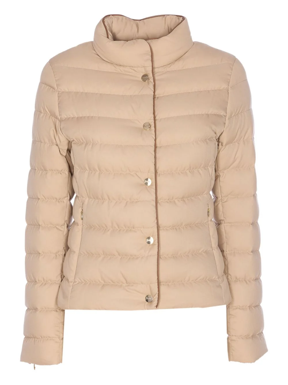quilted puffer jacket Highlights - Beige - Quilted design - Button fastening - Long sleeves - Zip pockets - Zip detail cuffs Imported Composition Lining: Down 80%, Feather 20% Outer: Polyester 100%, Lyocell 100% Washing instructions Read Manufacturer Guidelines
