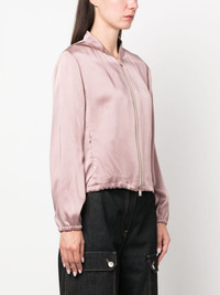 Resort zip-up bomber jacket Highlights - Light pink - Band collar - Front zip fastening - Gold-tone hardware - Long sleeves - Elasticated cuffs - Elasticated hem - Two side zip-fastening pockets Made in Italy Composition Outer: Acetate 71%, Viscose 29% Lining: Acetate 65%, Polyester 35% SIZE & FIT Model measurements Height 5 ft 10 in(1.78 m) Bust/Chest 33.46 in(85 cm) Hips 36.22 in(92 cm) Waist 23.22 in(59 cm) FittingInformation Designed for a relaxed fit, this piece allows for comfort and movement when worn The internal drawstring at the hem allows for fitted preferences Made from a midweight non-stretch fabric This piece fits true to size – take your usual size Washing instructions Machine Wash