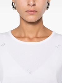 rhinestone-embellished short-sleeve t-shirt Highlights - White - Short sleeves - Round neck - Crystal embellishments Made in Italy Composition Fabric 100% SIZE & FIT Model measurements Height 5 ft 9 in(1.76 m) Bust/Chest 31.49 in(80 cm) Hips 35.03 in(89 cm) Waist 24.8 in(63 cm) Washing instructions Read Manufacturer Guidelines