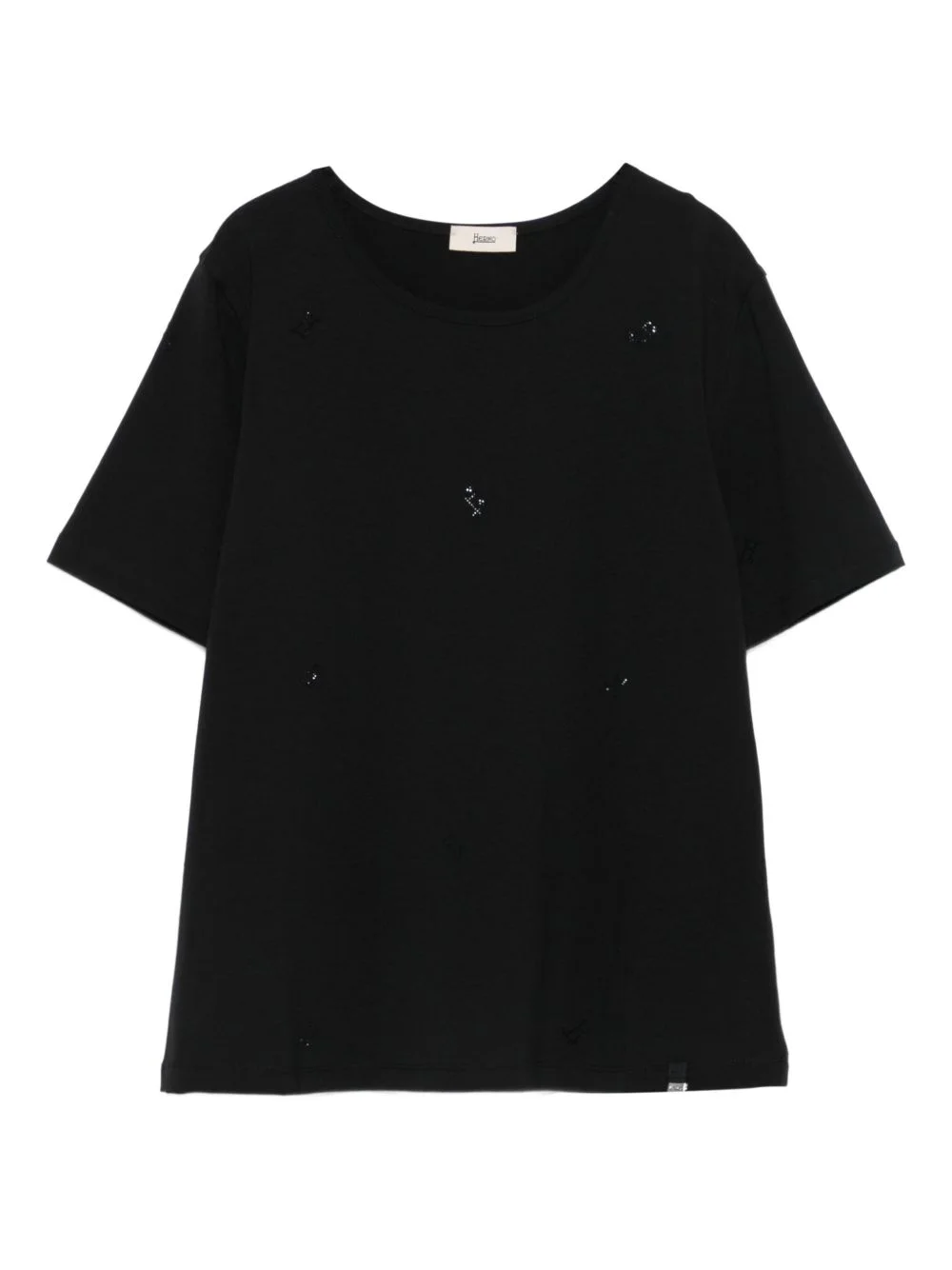 rhinestone-embellished short-sleeve t-shirt Highlights - Black - Short sleeves - Round neck - Sequin embellishments - Straight hemline Made in Italy Composition Fabric 100% SIZE & FIT Model measurements Height 5 ft 9 in(1.76 m) Bust/Chest 31.49 in(80 cm) Hips 35.03 in(89 cm) Waist 24.8 in(63 cm) Washing instructions Read Manufacturer Guidelines