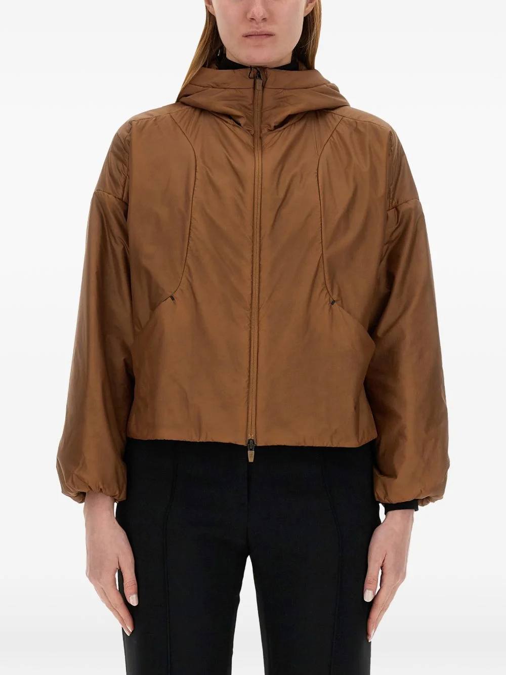 ripstop hooded jacket Highlights - Light brown - Ripstop texture - Waterproof - Panelled design - Branded zip puller - Classic hood - Drop shoulder - Long sleeves with elasticated cuffs - Slip pockets to the sides - Front two-way zip fastening - Rear curved hem - Full lining Imported Composition Lining: Polyamide 100% Outer: Polyamide 100%, Viscose 100%, Polyester 100% SIZE & FIT FittingInformation Designed for a boxy fit, intended for a loose fit throughout Made from a padded non-stretch fabric, giving it no natural elasticity This piece fits true to size – take your usual size Washing instructions Hand Wash