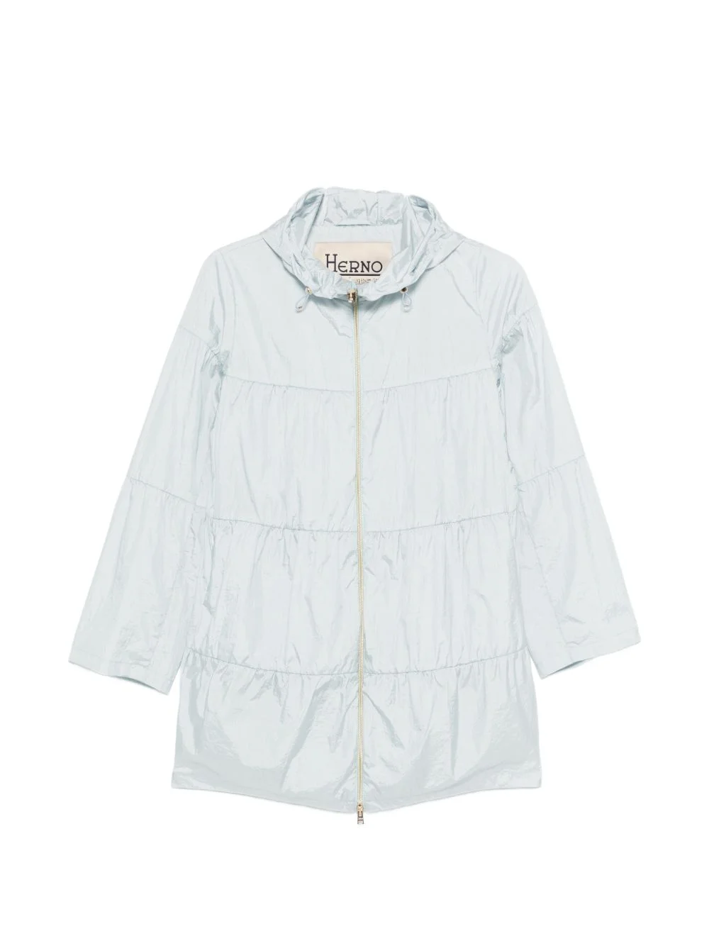 ruffled jacket Highlights - Light blue - Hooded neck - Zip fastening - Long sleeves Made in Italy Composition Polyamide 100% Washing instructions Dry Clean Only