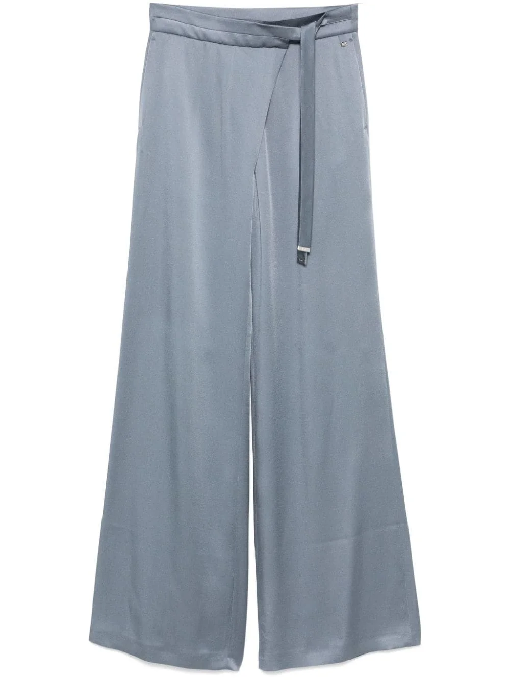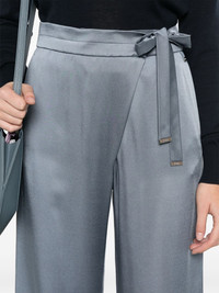 wrap trousers Highlights - Cornflower blue - Satin weave - Wrap design - Concealed front button fastening - Self-tie fastening - Two side slit pockets - Dart detailing - Straight leg Made in Italy Composition Outer: Acetate 71%, Viscose 29% Lining: Acetate 65%, Polyester 35% SIZE & FIT Model measurements Height 5 ft 9 in(1.75 m) Bust/Chest 31.88 in(81 cm) Hips 34.64 in(88 cm) Waist 24.01 in(61 cm) FittingInformation Designed with a wide-leg cut, these trousers allow for a close fit at the waist and offer a loose and roomy fit over the leg The tie fastening gives an adaptable and personalised fit Made from a lightweight non-stretch fabric