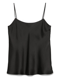 satin tank top Highlights - Black Imported Composition Polyester 100% SIZE & FIT Model measurements Height 5 ft 10 in(1.77 m) Bust/Chest 34.25 in(87 cm) Hips 37.4 in(95 cm) Waist 29.13 in(74 cm) FittingInformation Designed for a slim fit that sits just away from the body offering a close yet comfortable fit Made from a lightweight non-stretch fabric