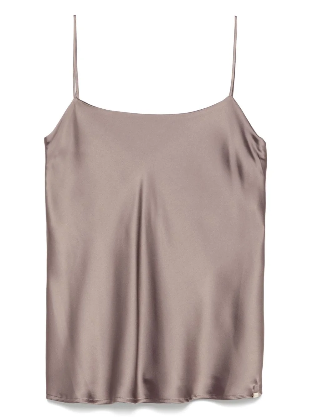 satin tank top Highlights - Auburn brown - Square neck - Spaghetti straps - Straight hem Imported Composition Polyester 100% SIZE & FIT Model measurements Height 5 ft 10 in(1.79 m) Bust/Chest 33.07 in(84 cm) Hips 35.82 in(91 cm) Waist 24.01 in(61 cm) FittingInformation Designed for a slim fit that sits just away from the body offering a close yet comfortable fit Made from a lightweight non-stretch fabric Washing instructions Machine Wash