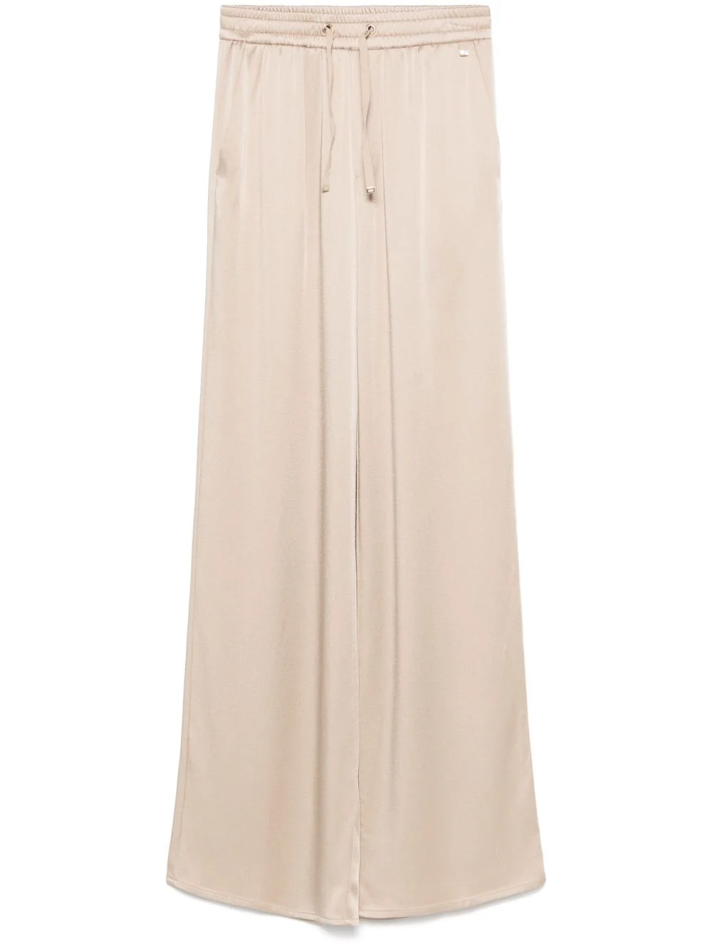 satin trousers Highlights - Beige - Elasticated drawstring waistband - Two side inset pockets Made in Italy Composition Acetate 71%, Cotton 55%, Polyester 45%, Viscose 29% SIZE & FIT Model measurements Height 5 ft 10 in(1.78 m) Bust/Chest 32.67 in(83 cm) Hips 35.43 in(90 cm) Waist 23.22 in(59 cm) FittingInformation Designed with a wide-leg cut, these trousers allow for a close fit at the waist and offer a loose and roomy fit over the leg The elasticated waist allows for a comfortable fit Made from a midweight non-stretch fabric Washing instructions Machine Wash