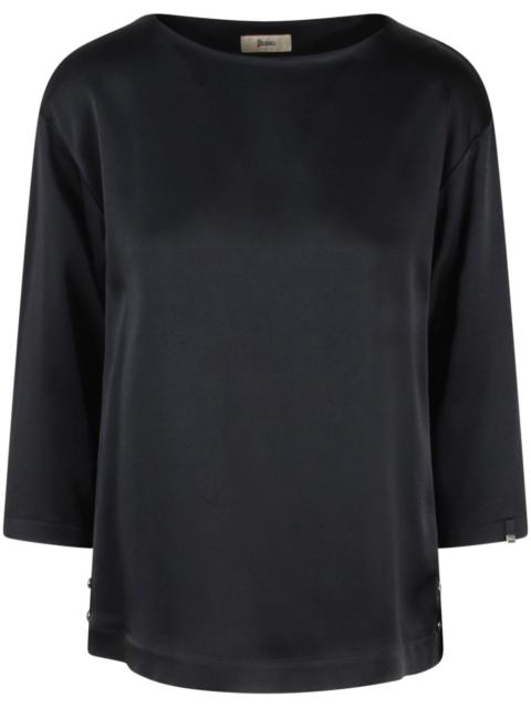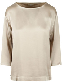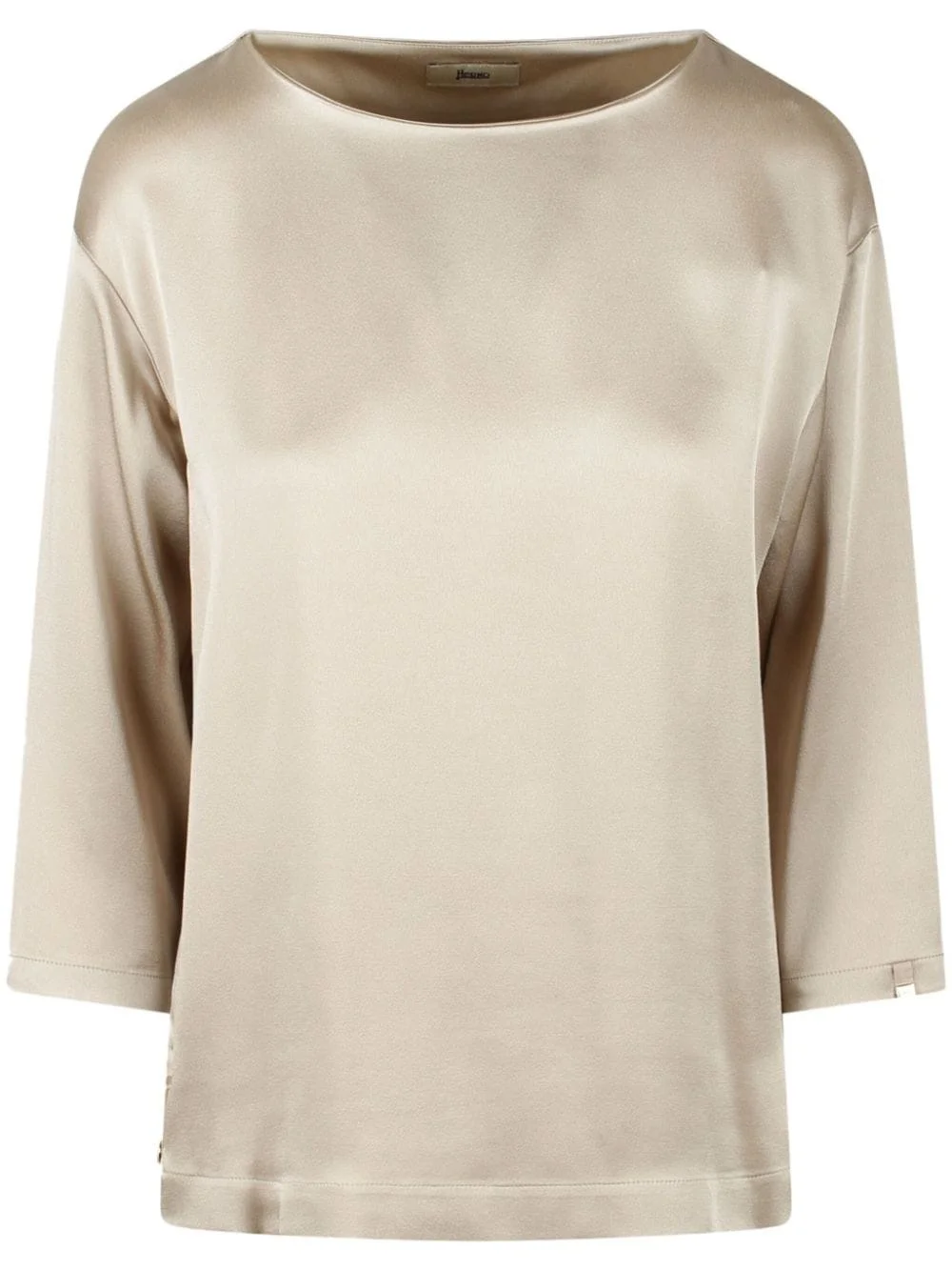 satin-weave top Highlights - Beige - Satin weave - Round neck - Drop shoulder - Three-quarter length sleeves - Logo plaque - Straight hem Imported Composition Acetate 71%, Viscose 29%