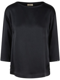 satin-weave top Highlights - Black - Satin weave - Round neck - Drop shoulder - Three-quarter length sleeves - Logo plaque - Straight hem Imported Composition Acetate 71%, Viscose 29%