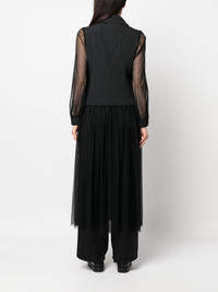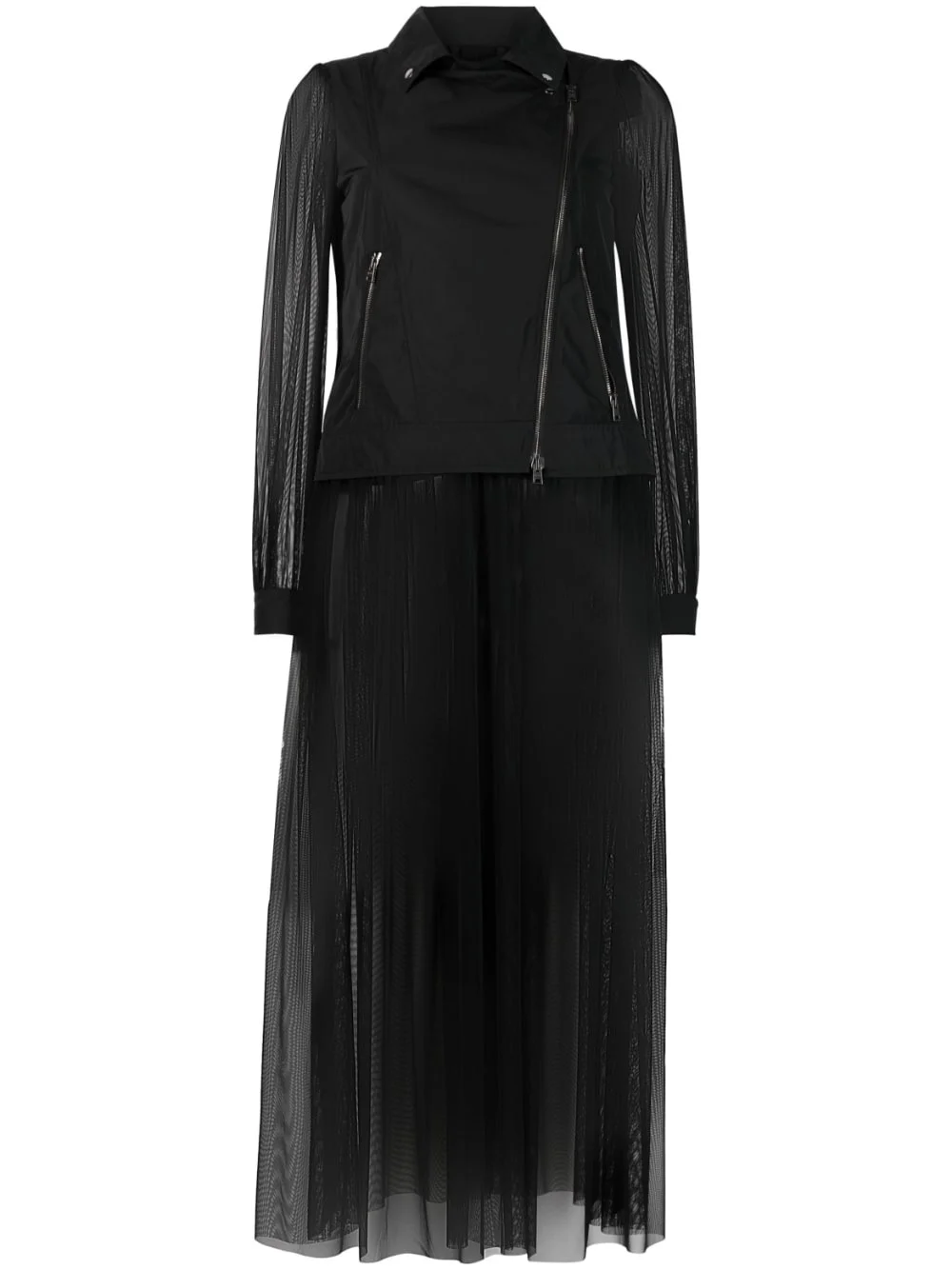 semi-sheer biker-style coat Highlights - Black - Cutaway collar - Tulle netting - Off-centre front zip fastening - Long sheer sleeves - Two side zip-fastening pockets Made in Italy Composition Outer: Polyester 100%, Polyamide 82%, Spandex/Elastane 18% Lining: Polyamide 82%, Spandex/Elastane 18% SIZE & FIT Model measurements Height 5 ft 10 in(1.78 m) Bust/Chest 31.49 in(80 cm) Hips 36.22 in(92 cm) Waist 25.59 in(65 cm) FittingInformation Designed for a slim fit that sits just away from the body offering a close yet comfortable fit Made from a lightweight non-stretch fabric This piece fits true to size – take your usual size Washing instructions Dry Clean Only