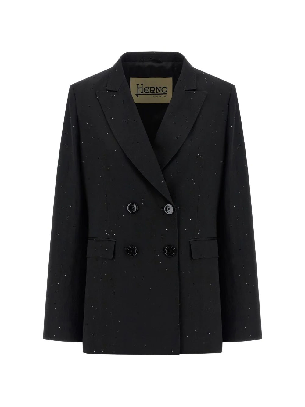 sequin-applique double-breasted blazer Highlights - Black - Sequin applique - Peak lapels - Flap pockets - Long sleeves - Back split Made in Italy Composition Viscose 66%, Linen/Flax 20%, Polyamide 14% Washing instructions Read Manufacturer Guidelines