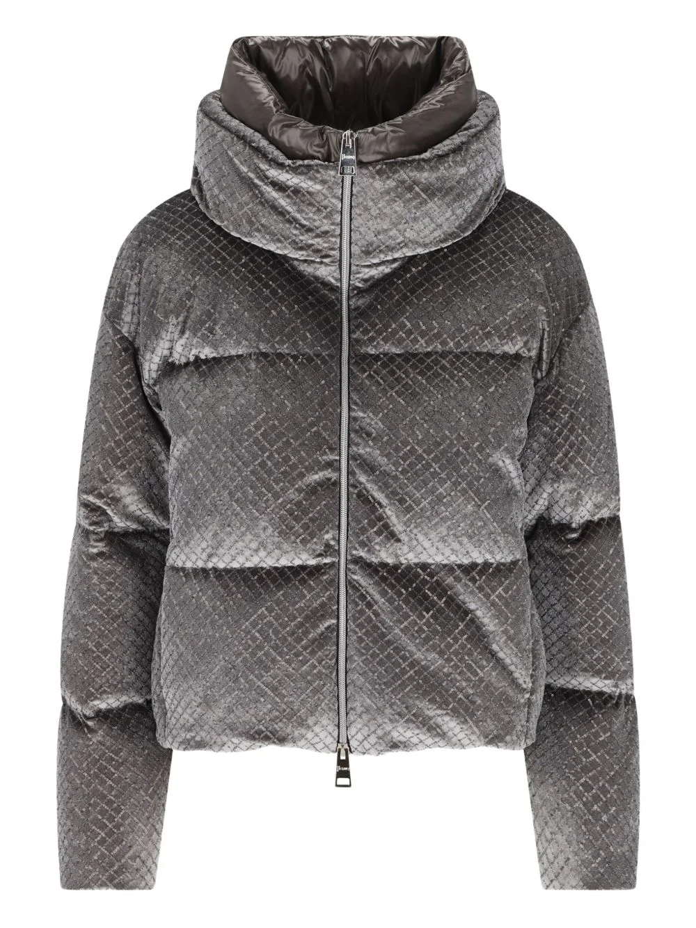 sequin high-neck jacket Highlights - Grey - Sequin embellishment - High neck - Zip closure - Side pockets - Padded Imported Composition Outer: Polyester 100% Lining: Polyamide 100%, Down 80%, Feather 20% Washing instructions Dry Clean Only