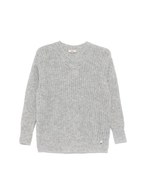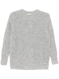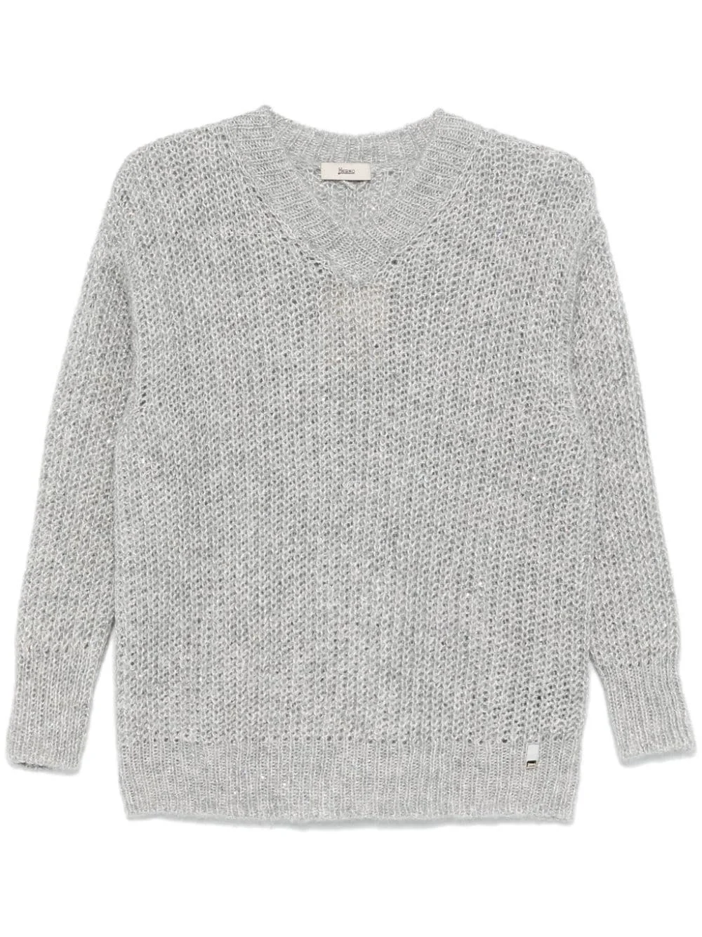 sequinned sweater Highlights - Light grey - Chunky knit - Metallic threading - Sequin embellishment - V-neck - Long sleeves - Ribbed cuffs - Silver-tone logo plaque - Ribbed hem Made in Italy Composition Polyester 35%, Polyamide 32%, Alpaca 31%, Metallic Fibre 2% SIZE & FIT Model measurements Height 5 ft 9 in(1.75 m) Bust/Chest 31.88 in(81 cm) Hips 34.64 in(88 cm) Waist 24.01 in(61 cm) FittingInformation Designed to be unstructured, offering a loose fit throughout Made with a midweight knit, this piece offers some stretch