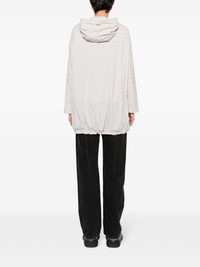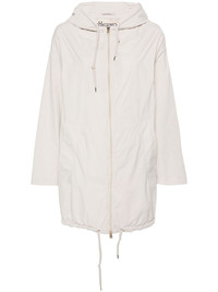 shell zipped raincoat Highlights - Light grey - Shell - Drawstring hood - Long sleeves - Two side welt pockets - Internal locker loop - Internal logo tag - Drawstring hem - Front zip fastening Made in Italy Composition Polyamide 86%, Elastane 14% SIZE & FIT Model measurements Height 5 ft 11 in(1.8 m) Bust/Chest 33.07 in(84 cm) Hips 37 in(94 cm) Waist 25.59 in(65 cm) FittingInformation Designed to be unstructured, offering a loose fit throughout The internal drawstring at the hem allows for fitted preferences Made from a lightweight non-stretch fabric This piece fits true to size – take your usual size Washing instructions Dry Clean Only