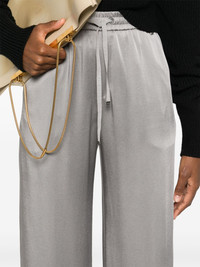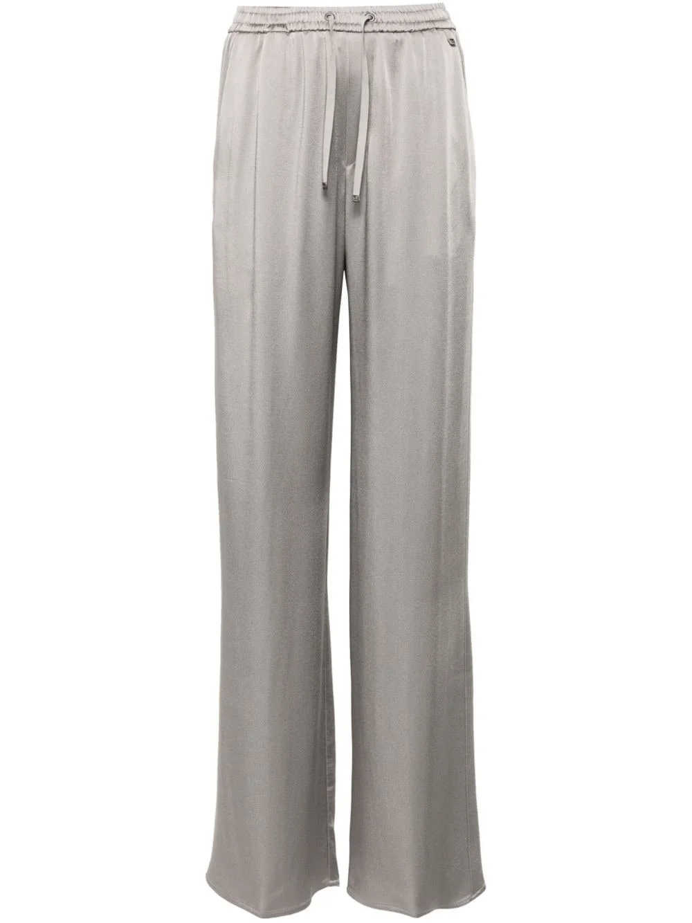 crepe trousers Highlights - Medium grey - Cotton blend - Crepe texture - Elasticated drawstring waistband - Silver-tone logo plaque - Two diagonal pockets to the sides - Straight leg Made in Italy Composition Acetate 71%, Cotton 55%, Polyester 45%, Viscose 29% SIZE & FIT Model measurements Height 5 ft 10 in(1.77 m) Bust/Chest 34.64 in(88 cm) Hips 35.43 in(90 cm) Waist 24.8 in(63 cm) FittingInformation Designed with a wide-leg cut, these trousers allow for a close fit at the waist and offer a loose and roomy fit over the leg The elasticated waist allows for a comfortable fit Made from a midweight non-stretch fabric This piece fits true to size – take your usual size Washing instructions Machine Wash