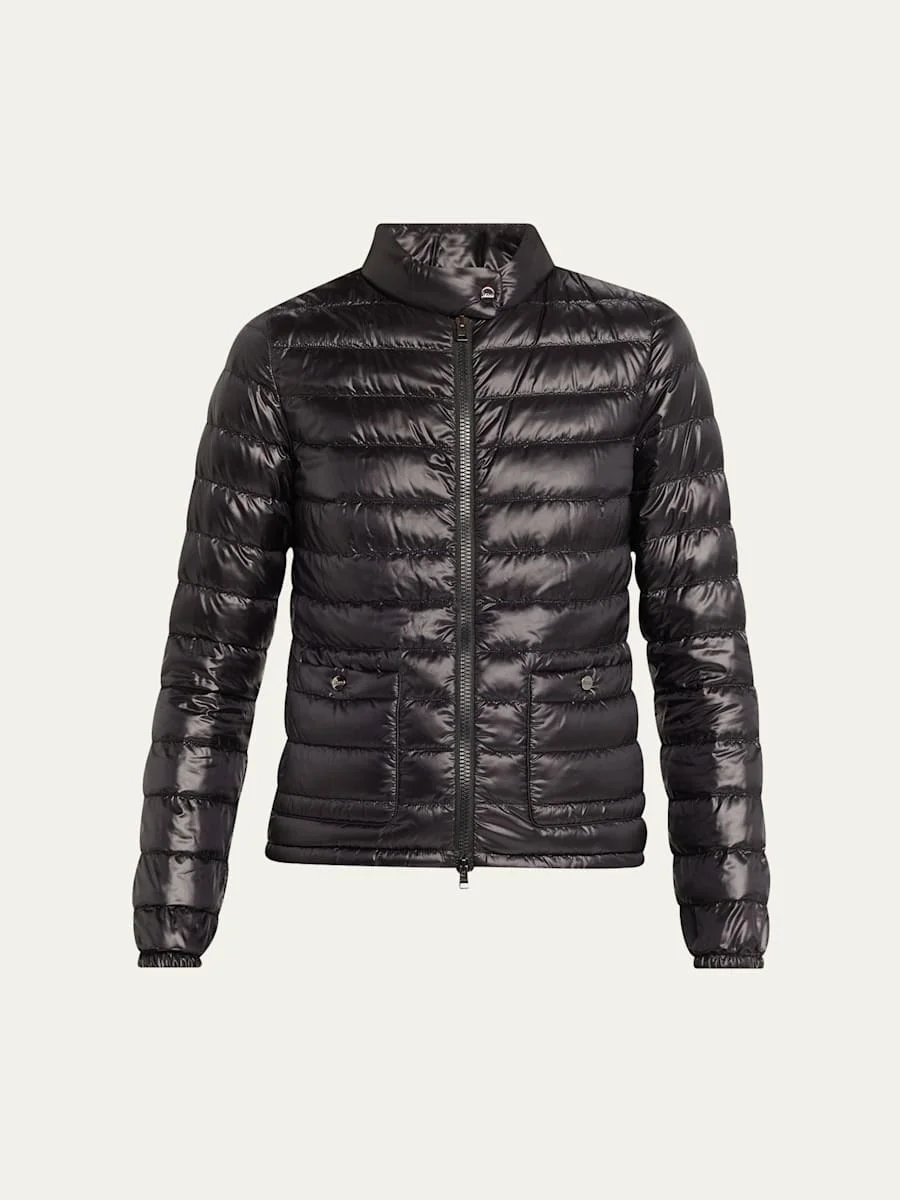 Herno quilted puffer jacket in water-repellent shiny nylon Stand collar with snap closure Long sleeves with elastic cuffs Patch pockets with snaps Classic fit Two-way zip-front Nylon/polyamide Fill: Down/feather Dry clean Imported Online Inquiries: BGS21_T6KLH| Store Inquiries: #4997733