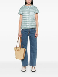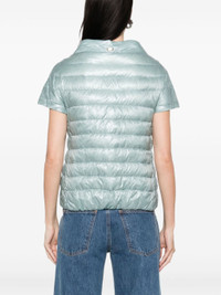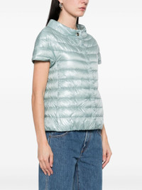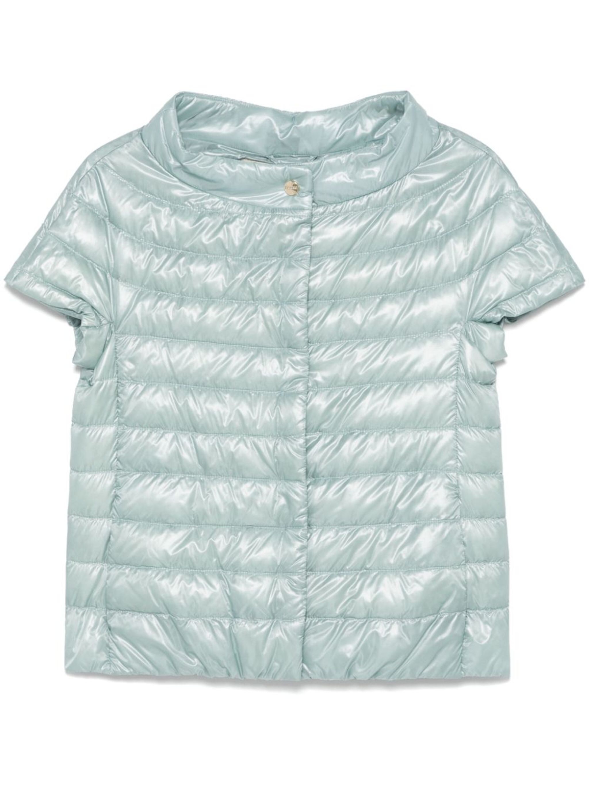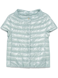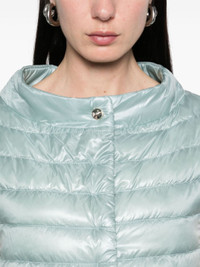 light blue concealed press-stud fastening two side slit pockets gold-tone logo plaque collarless Size & Fit Model Measurements: Height: 1.78 m Bust/Chest: 85.0 cm Hips: 90.0 cm Waist: 59.0 cm Model wears size 40 Fabric and Care Designer Style ID: PI0003DIC12017Z Designer Colour: 9014 blue Composition: Outer: Polyamide 100%, Cotton 55%, Polyester 45%; Lining: Polyamide 100%, Goose down 90%, Goose feather 10% Washing instructions: Hand Wash Made in Romania