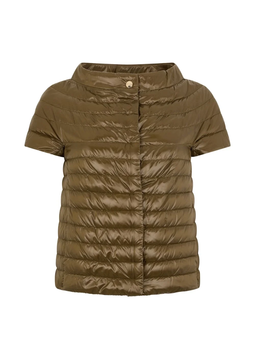 short-sleeve puffer jacket Highlights - Brown - Button fastening - Short sleeves - Quilted design Imported Composition Polyamide 100% Washing instructions Read Manufacturer Guidelines
