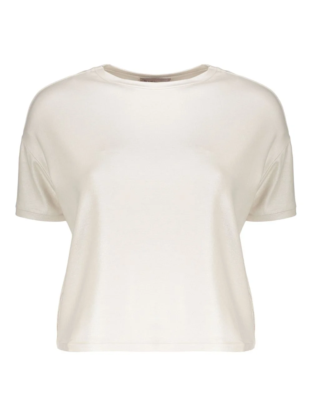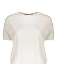 short-sleeve round-neck T-shirt Highlights - Neutrals - Short sleeves - Round neck - Straight hem - Rear logo plaque Made In Italy Composition Viscose 92%, Lycra 8% Washing instructions Read Manufacturer Guidelines